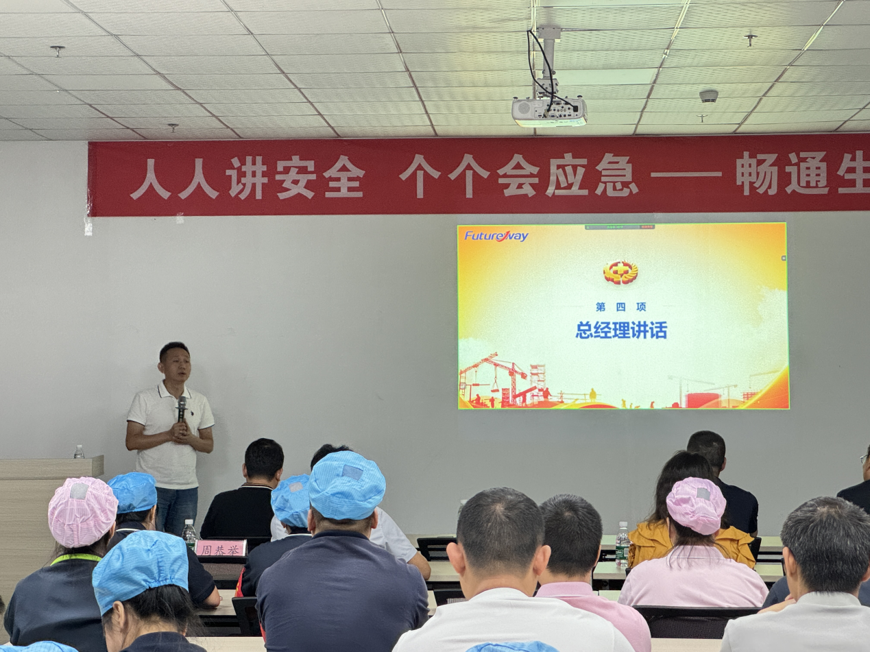 在大会尾声,张总强调:“安全是企业发展的基石,是员工幸福生活的保障。公司始终将安全生产放在首位,我们不仅要在生产过程中严格遵守安全规范,更要通过各种形式的培训和演练,提高全体员工的安全意识和应急能力。公司进一步加大各种资源的投入,确保生产安全得到充分保障。”